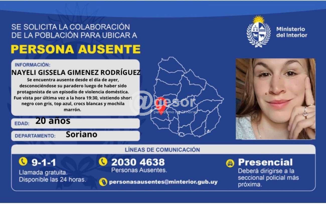 El Ministerio del Interior a través de la Jefatura de Policía de Soriano está solicitando la colaboración de la población para ubicar a una persona ause...