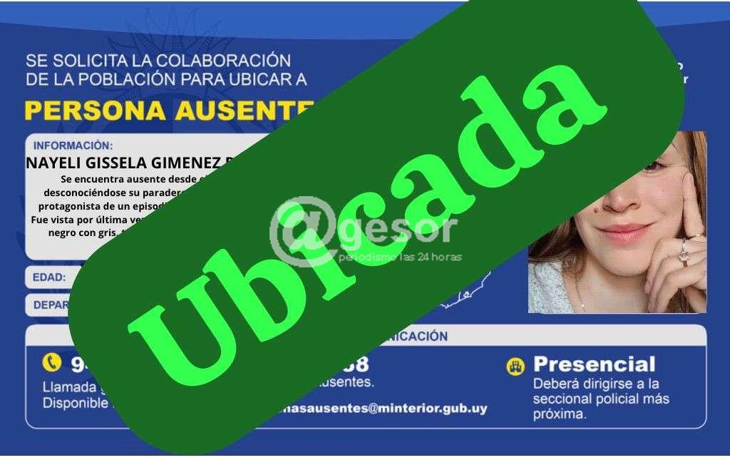 Fue ubicada la joven que era buscada tras un episodio de violencia doméstica. Jefatura de Policía de Soriano no especifica más detalles al respecto. Las actuacio...