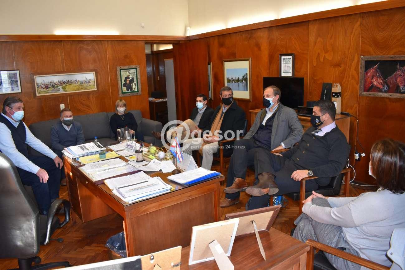 Este miércoles el intendente Guillermo Besozzi recibió en su despacho al Vice Presidente de ANCAP, Dr. Diego Durand, quien estuvo acompañado por gerentes de áreas de producción de ANCAP, y además por el Director de Transporte Ferroviario del MTOP, Uruguay Graña.