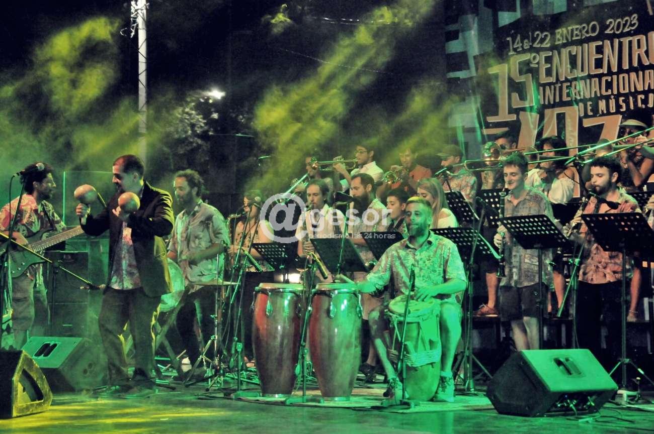 Y para el cierre se armó una big band conformada por Carricola Jazz Orchestra + La Cumbia Grande (Argentina) y como invitados también desde el vecino país argentino integrantes de la orquesta La Papayera, para interpretar temas sobre la base del repertorio de La Cumbia Grande, relacionados con la cumbia colombiana, precisamente con el cantante de esa nacionalidad Jhon Rubio y el resto del grupo de Argentina, más precisamente de Mar del Plata.