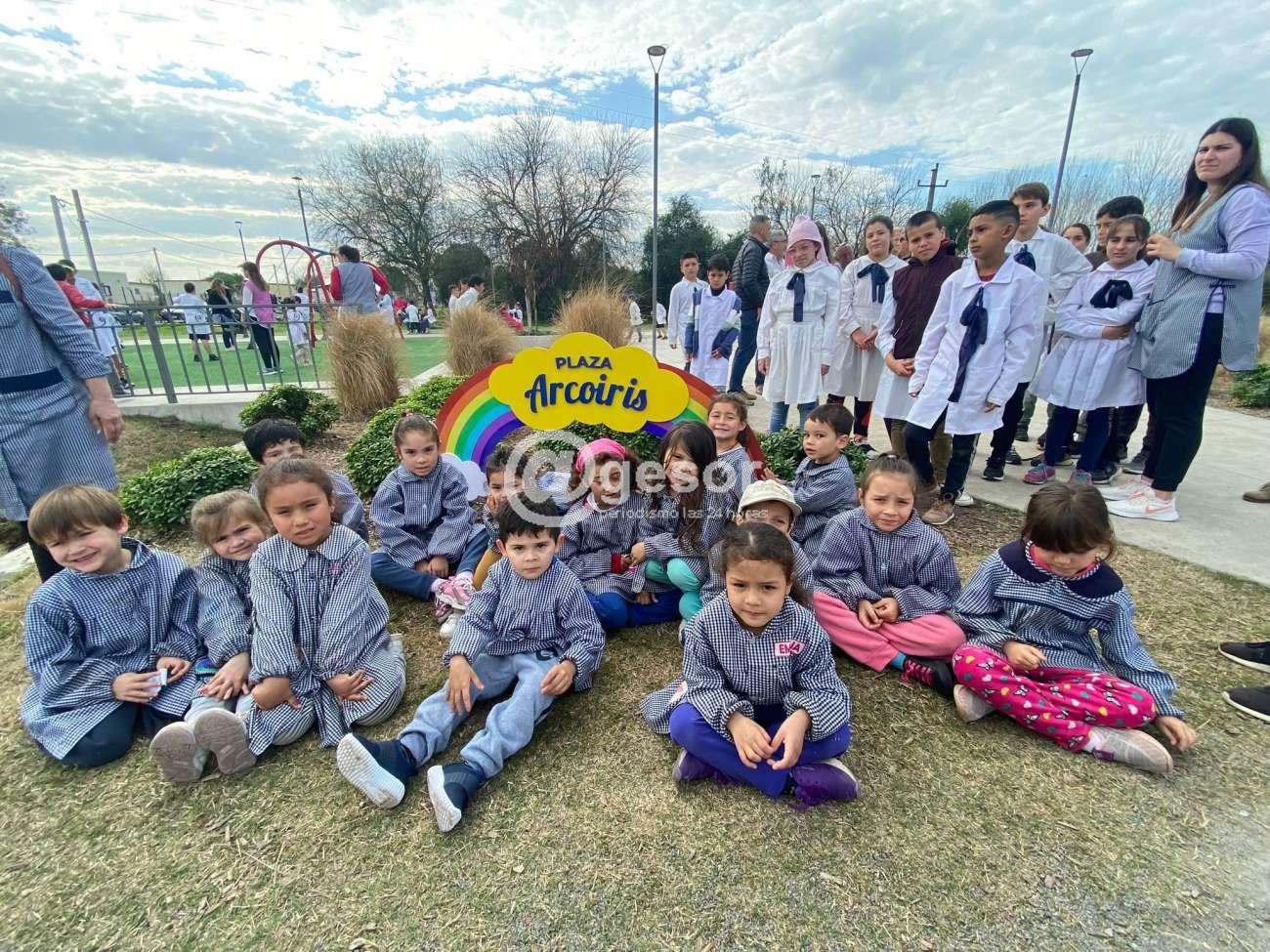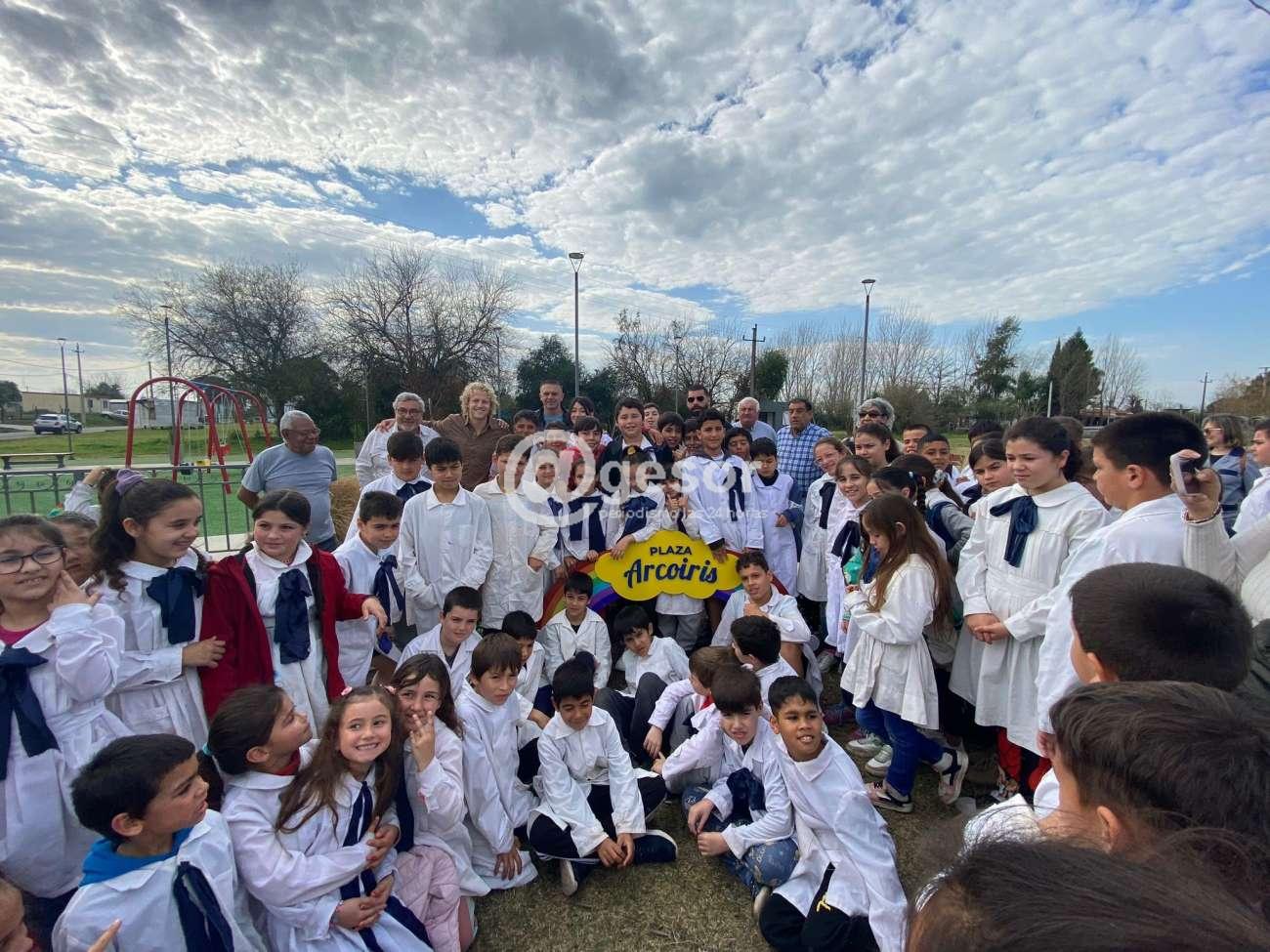 Desde el Municipio de Dolores se informa que este miércoles se colocó el cartel de la Plaza Arcoíris, nombre que fue propuesto por los alumnos de la Escuela 112 “Constancio C. Vigil”, quienes acompañaron en la instancia a descubrirlo, y fue aprobado por la Junta Departamental de Soriano para asignarle identidad a este nuevo espacio recreativo inaugurado en diciembre de 2021.