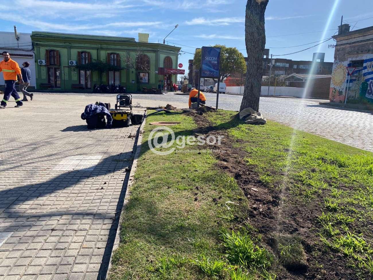 En ese sentido comenzó a realizarse el zanjeado para el correspondiente tendido de los ductos con los cables para la alimentación eléctrica del nuevo sistema lumínico de este espacio público.