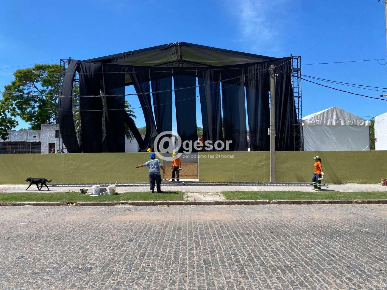 principalmente en el montaje de las estructuras anexas en el nuevo escenario fijo construido en la Manzana