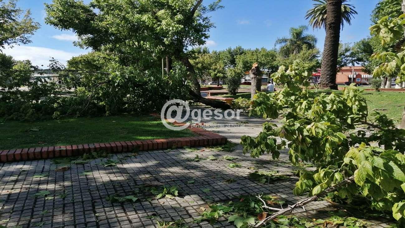 Como informamos en nota aparte el caudal de lluvia más importante se registró en Mercedes con 90 milímetros, donde también se registraron voladuras de techos, caídas de ramas y árboles del ornato público. También terminaron en el suelo cables de diferentes servicios.