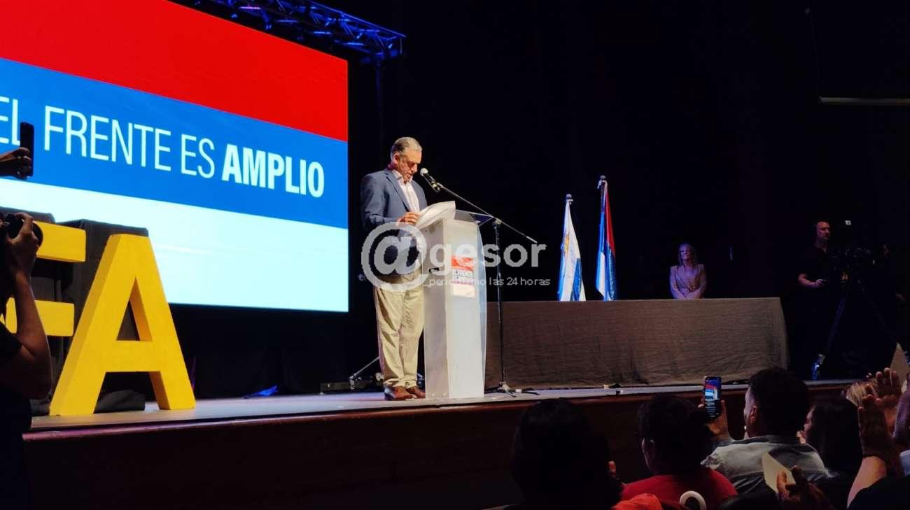 Hoy se formaliza lo que se define como la fórmula y a mí me cuesta un poco decir la fórmula y busqué el significado y dice algo así como un medio práctico para ejecutar algo difícil. Y después vienen todos los derivados de la química, pero en realidad esto que está naciendo hoy desde el punto de vista formal, como la fórmula, un candidato a presidente y una candidata a vicepresidenta es algo bastante más que un pacto, es algo bastante más que una suma, que un acuerdo, no es un cálculo, todos somos conscientes que es la síntesis natural de lo que somos y es lo que surge a partir de un camino largo y otro más pequeño, más corto donde le metimos mucha intensidad después del 19 y que confluye en esto y que nos hace sentir orgulloso de pertenecer a esta fuerza política, de pertenecer a esta Frente Amplio y de valorarlo en su dimensión, por lo tanto lo que aquí está pasando o lo que pasó el 30 cuando subimos juntos con Carolina es la síntesis que siempre ha sido a lo que siempre ha apuntado el Frente Amplio que es la síntesis natural de nuestra esencia, así que con orgullo y alegría digo la fórmula nos representa en el corazón porque nos sentimos todos parte de algo que es mucho más grande y viene de muy lejos y que confluyó en una interna en la que todos los sectores y grupos metimos todo, metieron todo para que el Frente fuera muy bien votado y a pesar de que le decíamos al presidente del Frente, Fernando Pereira que estaba loco cuando decía 400 mil votos le ganamos incluso y superamos sus expectativas.