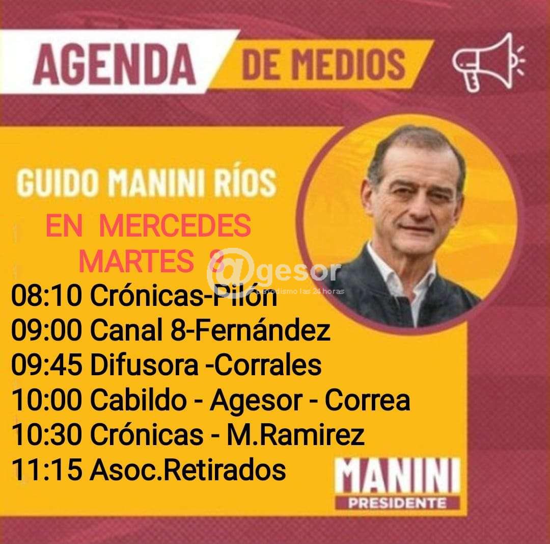 Este martes 8 de octubre llega a Mercedes el presidenciable GUIDO MANINI RÍOS de Cabildo Abierto para efectuar acto central, que se ha fijado para la hora 19.00 en el Club Ayuí.