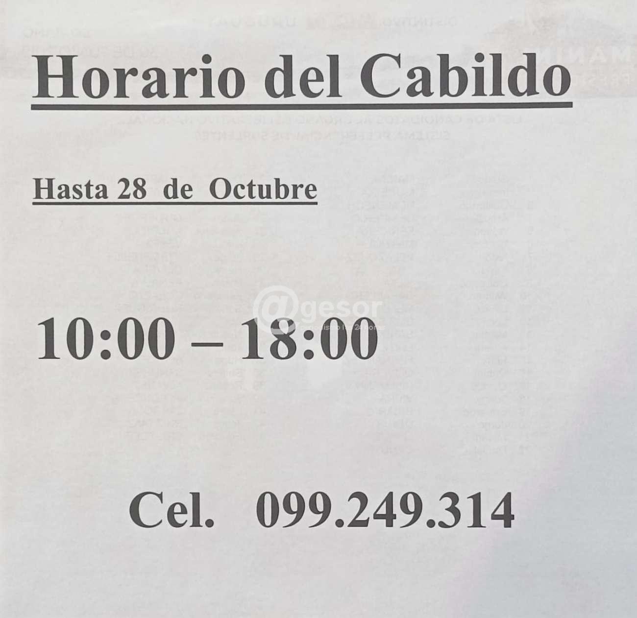 El Cabildo de la 456 estará abierto hasta el 28 de octubre de 10.00 a 18.00 horas en de Castro y Careaga 663 de Mercedes, podés comunicarte a través del celular 099 249 314