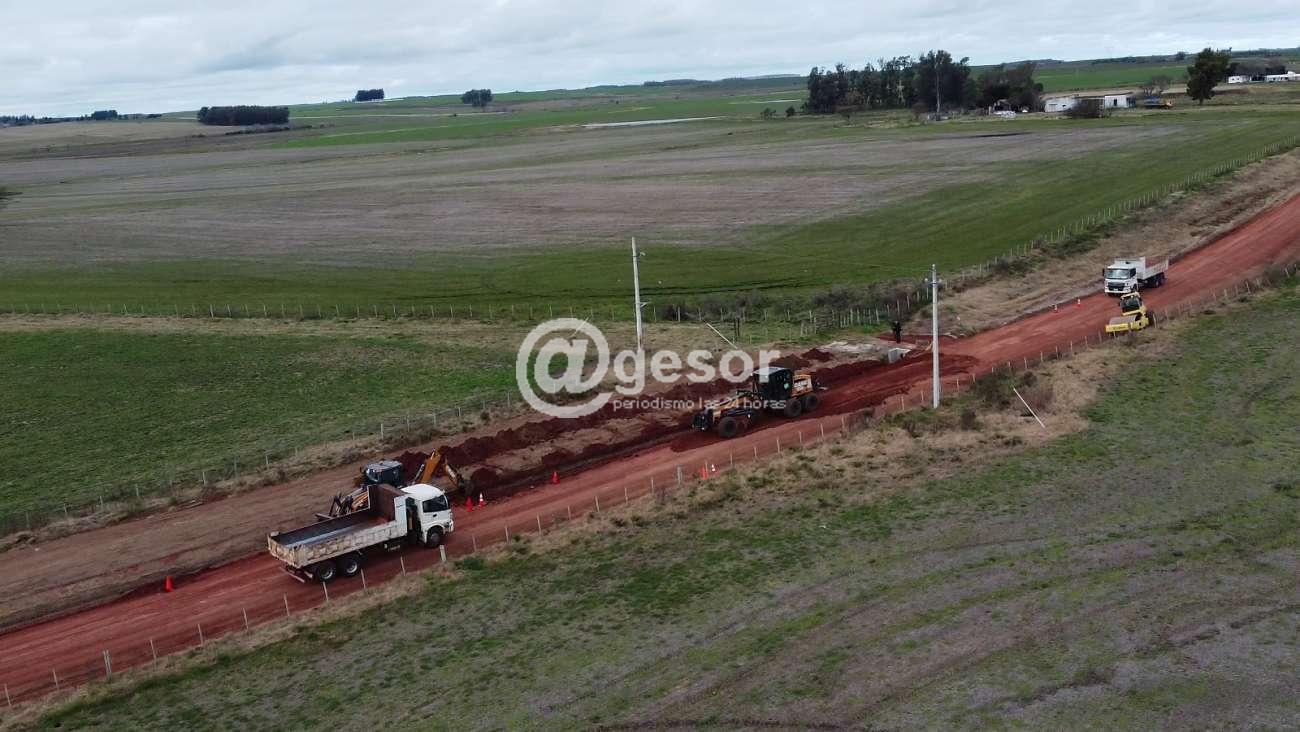 Con un intenso movimiento de maquinaria y obreros municipales, la Intendencia de Soriano está ejecutando obras de pavimentación en el camino de acceso a El Tala.