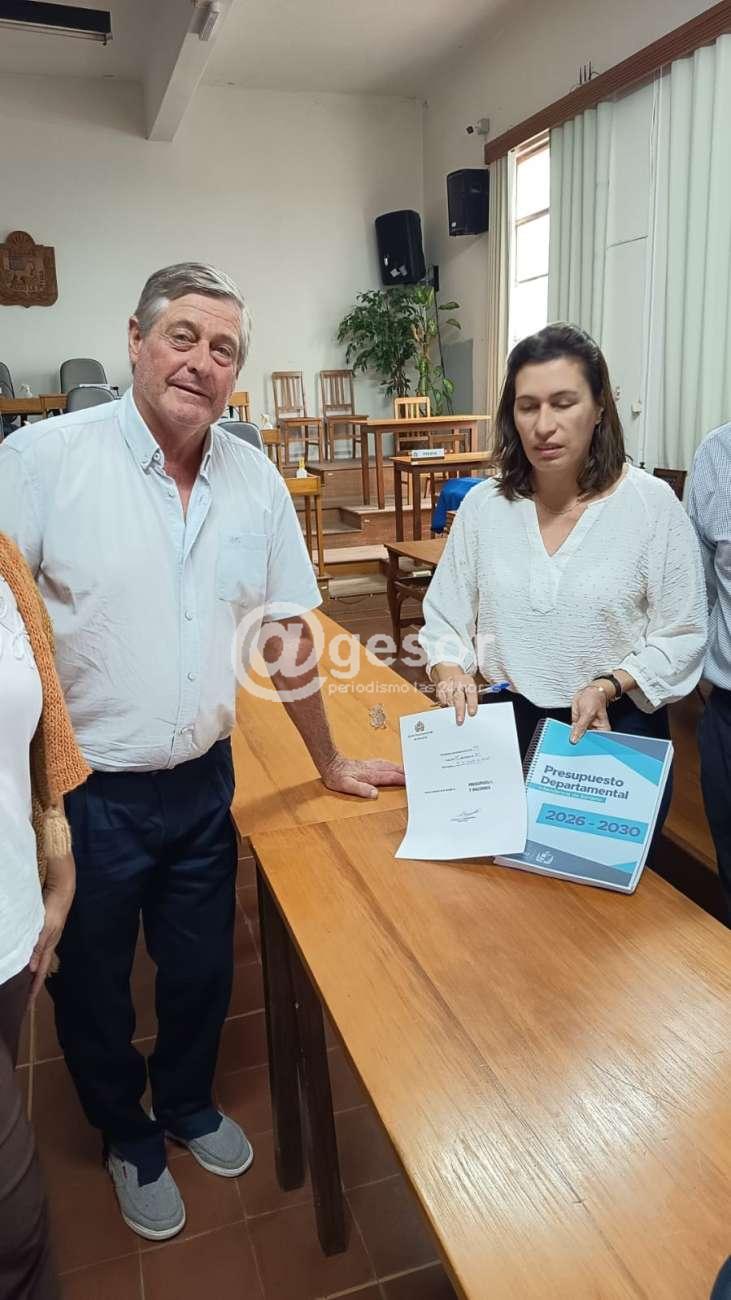 El intendente Guillermo Besozzi encabezó el grupo de jerarcas de la comuna que hicieron entrega del proyecto de Presupuesto Quinquenal a la Junta Departamental de Soriano.