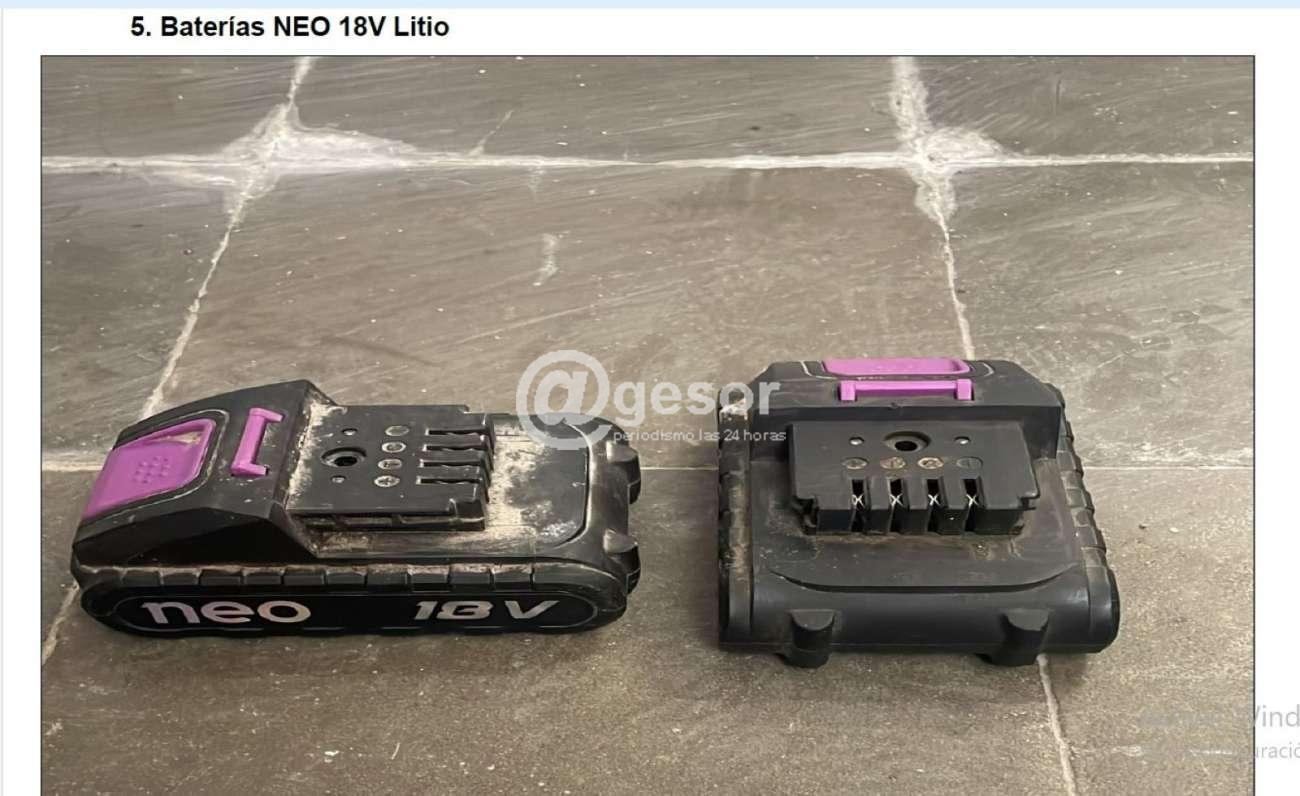 5. Dos baterías marca NEO, de litio, 18 volts, color negro.