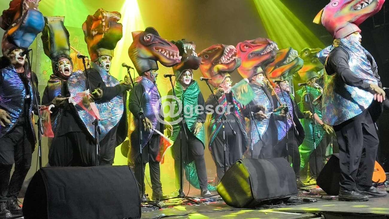 Este es otro caso que el hecho de cantar en el escenario del teatro potenció a la murga coralmente, ello sumado a que como nos decía el propio Claudio Cabral vienen con más rodaje han estado en otros concursos que les han permitido tener tres o cuatro actuaciones más desde la anterior en Soriano y ello se notó.