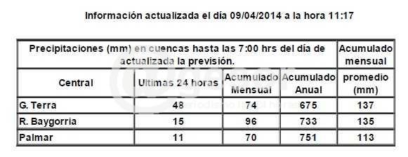 Desde el pasado martes el río Negro frente a Mercedes comenzó a experimentar una crecida, que por el momento solamente viene afectando la parte baja del Parque Gernika y la zona del Puerto de Mercedes. Como muestran las fotografías, las calles interiores del extremo Oeste del Parque Gernika han sido cortadas al subir el nivel del río. En tanto UTE emitió un comunicado dando cuenta del movimiento de compuestas registrado este miércoles. El mismo expresa: “A partir de la hora 16:00 del día Miércoles 9 de Abril de 2014 se procederá a la apertura parcial de las compuertas del vertedero de la Central "Dr. Gabriel Terra" ( Rincón del Bonete), lo que originará una elevación de los niveles del Río Negro entre centrales de 0,5 metros aproximadamente junto a la Central Dr. Gabriel Terra, y de 0,2 metros en Paso de los Toros. El caudal de la central variará 220 m3/seg, pasando de 680 m3/seg a 900 m3/seg.
