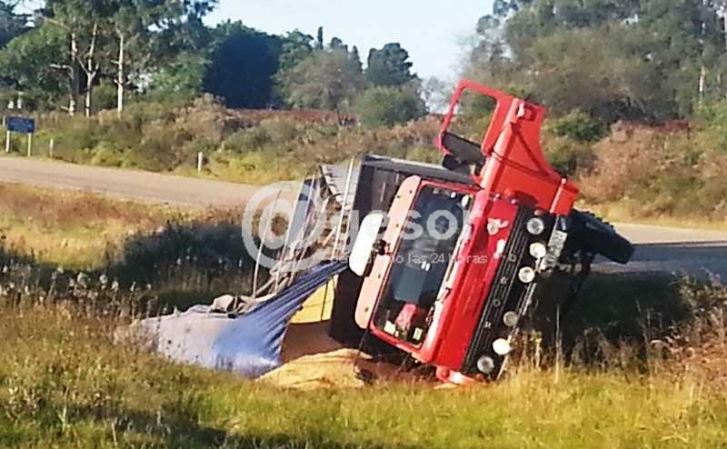 El vehículo conducido por un hombre de iniciales P A L de 51 años, como único ocupante, se desplazaba a la altura del Kim 354 de la Ruta Nº 21 de norte a Sur, volcó quedando de costado y buena parte de su carga esparcida en el lugar.