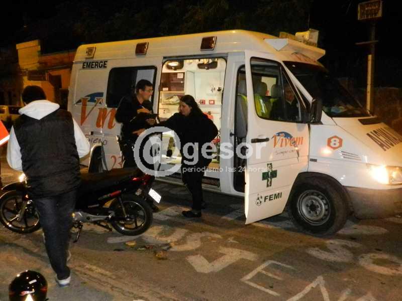 Colisión entre dos motos se produjo en la intersección de avda Fregeiro y Oribe con el resultado de una mujer y una niña que viajaban en uno de los vehículos lesionadas leves, siendo atendidas ambas por ambulancia de emergencia móvil en el lugar.