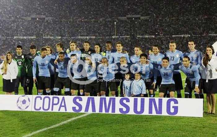 Uruguay (2): Fernando Muslera; Maximiliano Pereira (45' Jorge Fucile), Diego Lugano, Diego Godín (45' José María Giménez (81' Sebastián Coates)), Martín Cáceres; Egidio Arévalo Ríos, Walter Gargano (45' Álvaro González), Gastón Ramírez (45' Cristhian Stuani), Cristian Rodríguez (74' Álvaro Pereira); Diego Forlán y Edinson Cavani.