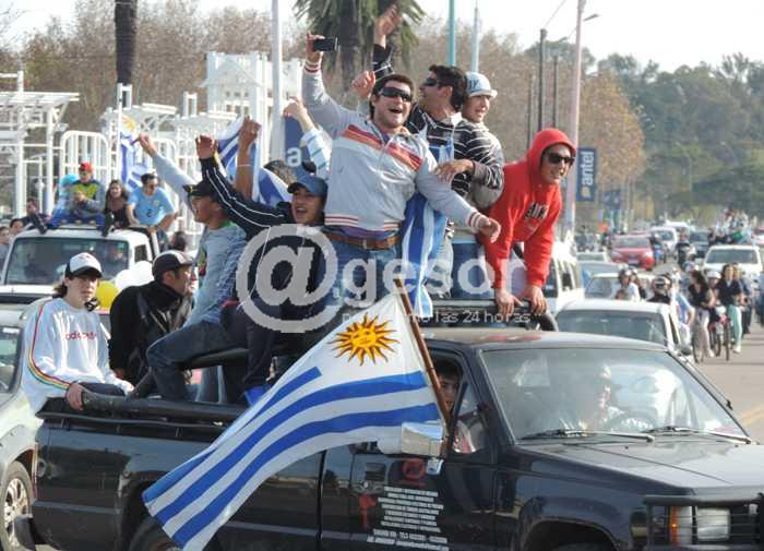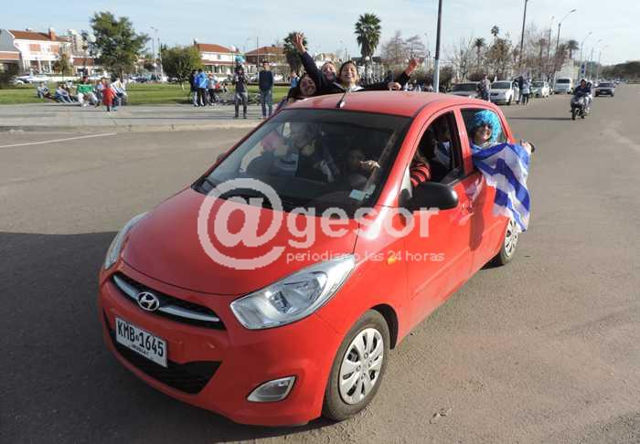 Si bien el extraordinario triunfo uruguayo se festejó en gran manera en todo Soriano, el punto de mayor concentración de los aficionados se registró en la capital departamental, en la Rambla Batlle y Ordóñez, donde confluyeron las improvisadas caravanas que se formaron de modo improvisado en el centro y otros puntos de Mercedes. Allí la larga fila de vehículos se extendió varias cuadras.