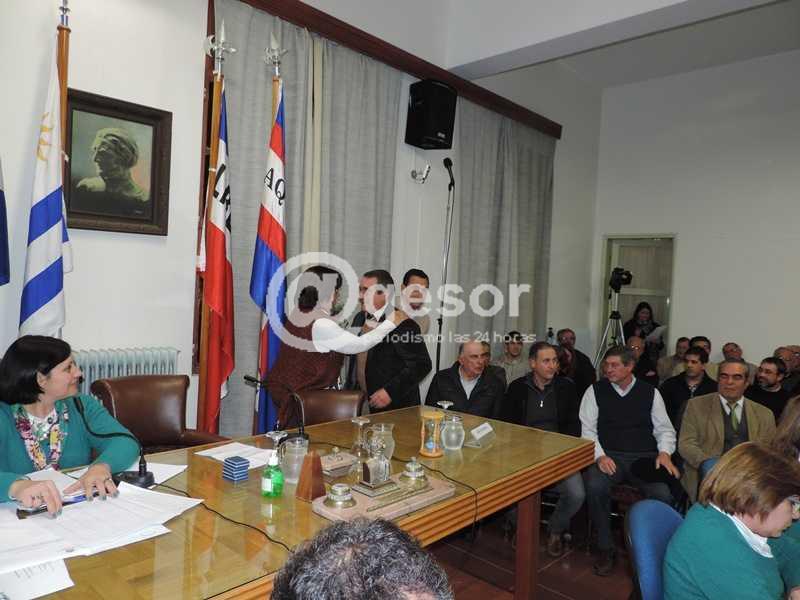 Una vez que asumió Scirgalea ingresaron a sala los ediles Aníbal Méndez , Jorge Elizondo(MPP), Enzo Malán y Boris Yoffre (PS); pero no ingresó la también socialista Alba Bonino a quien vimos fuera de la Intendencia.