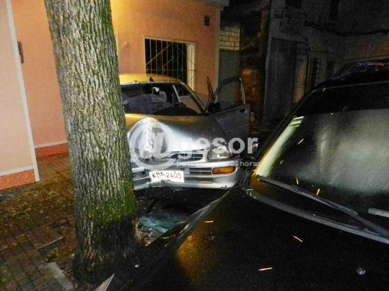Alrededor de la 1.30 de la madrugada de este lunes se produjo siniestro de tránsito causado por un autmóvil Daihatsu Cuora KMA 2405 que era guiado por Cristian Colmán Tomey, el que por razones que procuraba determinar en el lugar la Policía Científica y personal de Seccional 1a. y de la Brigada de Tránsito, circulando por Sánchez de Este a Oeste, al pasar Rivera, se fue sobre la margen derecha subiendo a la acera, rayando una camioneta que se encontraba estacionada frente a la finca de su propietario, impacta contra el árbol existente en el lugar y la parte trasera queda tapando media puerta de ingreso a la casa de la familia Sosa.