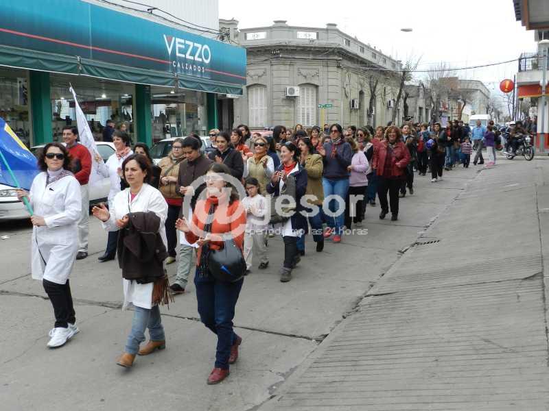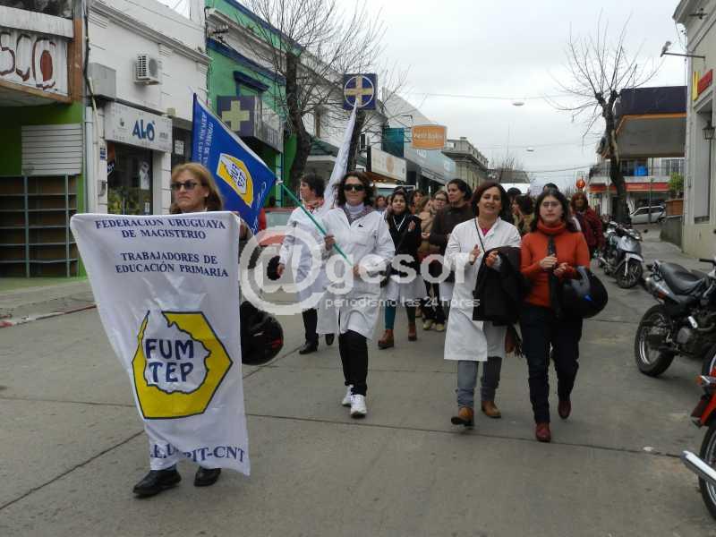 Posterior al encuentro en plaza Independencia los maestros, trabajadores y docentes jubiladas, marcharon por Colón, Rodó, Artigas y Ferreira Aldunate culminando frente a la sede de la Inspección Departamental de Primaria.