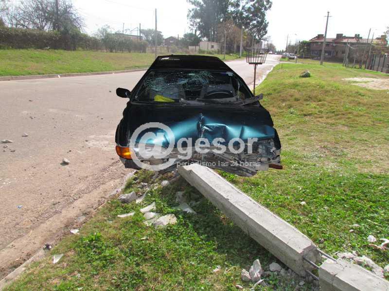 En calle Cheveste entre Agraciada y Segurola impactó fuertemente contra una columna el auto Toyota, matrícula KMA-5465, guiado por un hombre de inciales M.M., que viajaba acompañado por varias personas, resultando todos los ocupantes con lesiones leves pese a la espectacularidad del accidente de tránsito ocurrido en el barrio 33 Orientales de Mercedes.