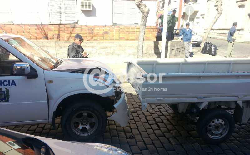 Detrás de la camioneta, lo hacía un móvil policial, matícula SMI 1641 en la que se desplazaban dos funcionarios policiales,que por causas que se tratan de establecer colisionó, con el vehículo detenido.