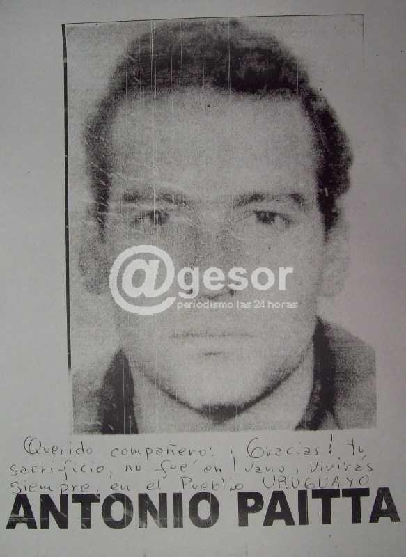 Testimonios: Testimonio oral de V.G.C. ante la Comisión para la Paz (21.12.2000): Todos los días terminados en 8 de cada mes mantenía un contacto clandestino con Antonio Paitta, en un lugar y una hora (16 hs.) que sólo ambos conocíamos. El día 28.09.1981 fue ese contacto en una calle, detrás de la fábrica de cemento, y ya al entrar había un operativo. Iba con mi hijo menor para disimular e intenté pasar desapercibido, pero fue imposible. El operativo montado incluía 7 u 8 autos y unas 20 a 25 personas. (...) De allí fue llevado, encapuchado, a un lugar desconocido -creía que era el Batallón 13 de Infantería- a cuyo primer piso, al cual se accedía por una escalera de caracol, tenían lugar las sesiones de tortura. (...) Para demostrarme que Paitta estaba detenido, le dijeron: “¿ves, lo tenemos acá?”. Y aunque estaba encapuchado, trajeron a Paitta de quien reconocí claramente la voz. Lo primero que le preguntaron fue su nombre, y él con voz dolida dijo lentamente su nombre completo: Omar Antonio Paitta Cardozo; enseguida le dijeron que leyera el nombre de “esta cédula de identidad”, y leyó mi nombre completo, y el interrogatorio continuó. Un par de días después escuché a Paitta -estando ambos en los calabozos de la planta baja, a una distancia de 5 o 6 metros- quien gritó una noche entera hasta el día siguiente, gritaba “me muero, me arde el pecho”, “agua”. Como respuesta a esos gritos le pegaban más. Se sentía que estaba muy mal. Luego no supe más nada”.