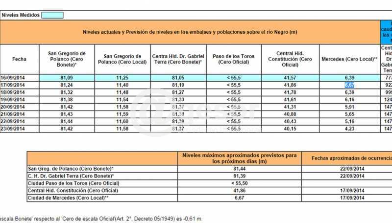 Ya en la mañana de este martes la altura del río Negro alcanzó los 6 metros 40 y por fuera de las previsiones que hacia UTE. El ente energético en su página oficial daba cuenta que el pico máximo sería de 6,11 mts. (sobre las 9:00 de la mañana), dato que quedó muy por debajo de lo previsto oficialmente, aunque sobre 09:30 horas se actualizó la información y ya habló de 6,67 mts.