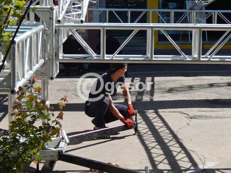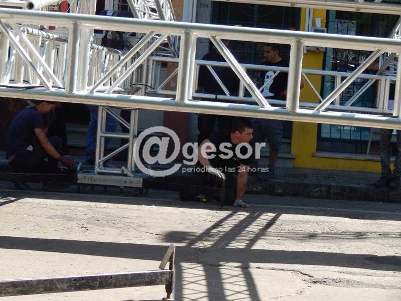 El comentario general de quienes también asistieron al lugar para actividad celebratoria del Día de la Educación Pública, era el no uso de indumentaria de seguridad por parte de los trabajadores que estaban cumpliendo tareas con las estructuras metálicas del escenario. No se aprecia ningún casco de protección, varios trabajadores tampoco cuentan con zapatos de seguridad están de championes. Vale señalar que algunos de los operarios sí tienen sus zapatos (casco no) y el cinturón de seguridad o el arné.