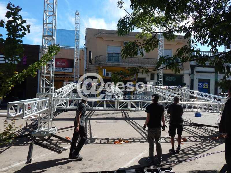 Llamó la atención de todas aquellas personas que se acercaban a la céntrica plaza Independencia de la ciudad de Mercedes para observar la labor que desempeñaban obreros en el armado del escenario donde hablarán en la noche de este lunes Tabaré Vázquez y Raúl Sendic en el marco de la gira nacional de cierre de la campaña hacia las Elecciones Nacionales del domingo 26 de octubre.