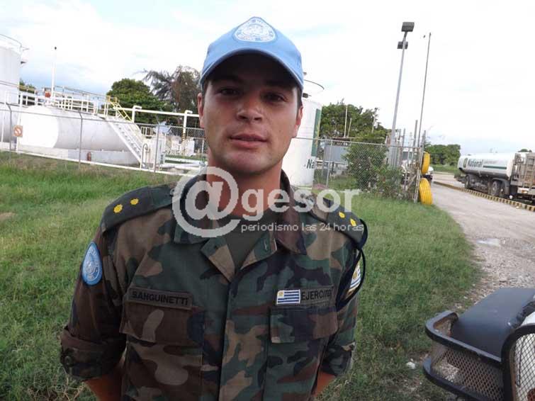 HAITI (Informe de Martín Corujo y Alejandro Bartesaghi de APU Soriano). "Es una tarea que hacemos con gusto, a veces duras y a veces no, pero es una actividad que hemos encarado con éxito durante los 9 meses", dijo el Tte.Segundo Pablo Sanguinetti, en relación a la Operación de Paz que lleva a cabo Uruguay en tierras haitianas. Sanguinetti es oriundo de Minas, pero se encuentra radicado en Mercedes por la tarea que desempeña en el Batallón "Asencio" de Infantería Nº 5, formando parte ahora de la base uruguaya que opera en Mirabalais, en Haití. El entrevistado destacó la convivencia que se da con los pobladores haitianos, teniendo en cuenta la cultura de vida de los ellos, la ayuda que se les debe brindar, y un tema al que todos los uruguayos hacen referencia, el calor insoportable que se vive a diario en Haití. Hizo referencia- además- al alto nivel de pobreza que enfrentan los lugareños, poniendo énfasis en que de alguna manera tratan de salir adelante, siendo vital en este caso la ayuda humanitaria que Uruguay les brinda a través de la misión de la ONU.