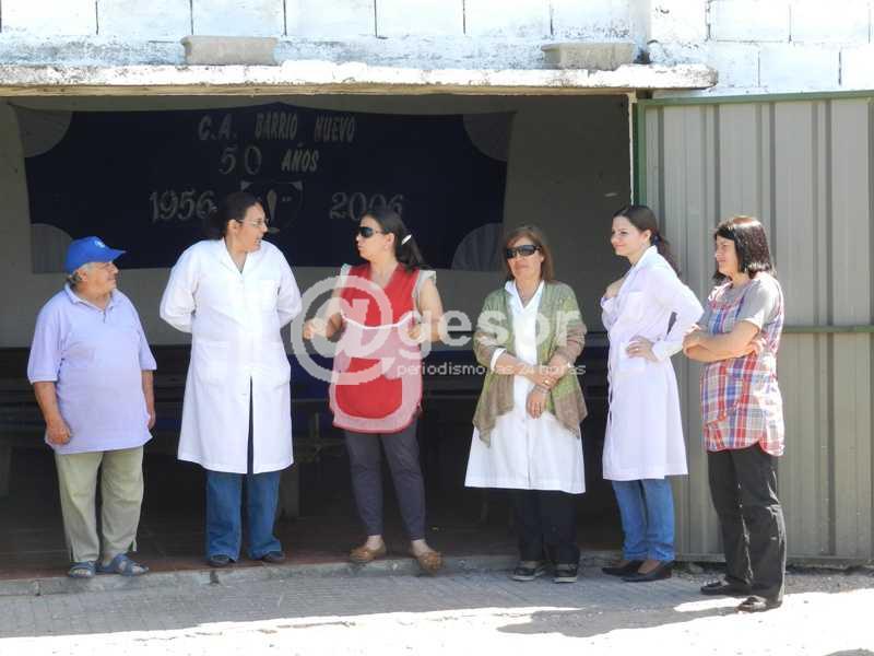 La maestra Alejandra Villalba del CAIF 56 estamos reunidos con la gente de Barrio Nuevo, con la Escuela y personal de la Intendencia para concretar en este espacio que cede el club una plaza que va a estar abierta para todo el público, que es uno de los objetivos de nuestro proyecto.