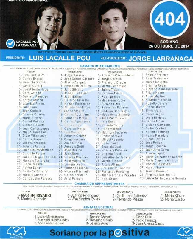 Aquellas personas que deseen votar la Lista 404 del Partido Nacional, la pueden levantar en los clubes de Colón y Sánchez, Colón y Casagrande, 18 de Julio y Giménez. También pueden solicitarla a través del celular 099 27 77 97 y se la llevan a domicilio.
