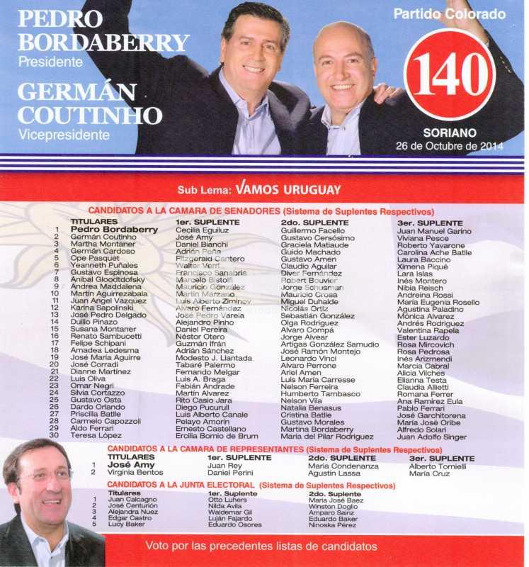 Quienes deseen votar la Lista 140 del Partido Colorado pueden hacerlo en los lugares que detallamos a continuación: