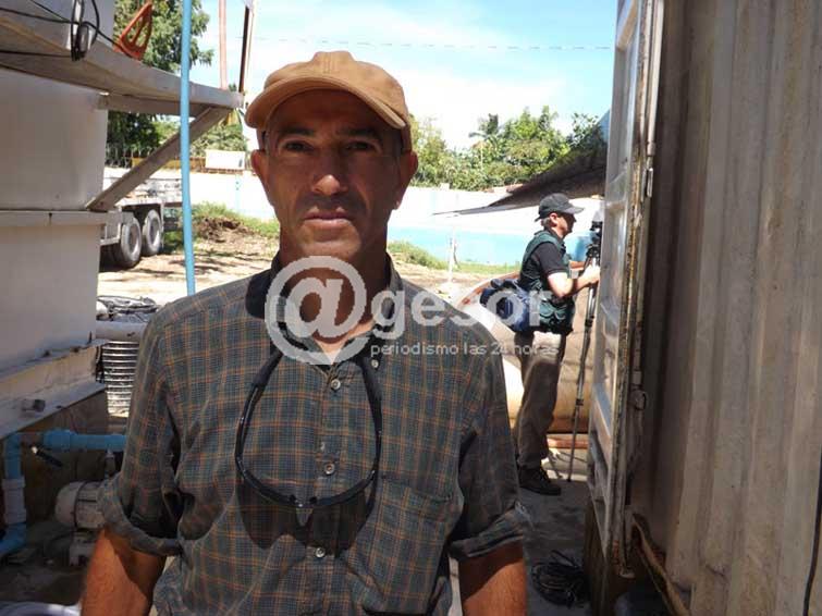 Arlington Cardozo desempeña tareas en una de las plantas potabilizadoras de agua en Hinche, Haití