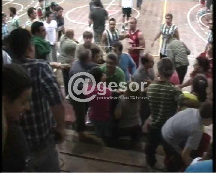 Dicho encuentro debió ser suspendido por los jueces cuando estaba en juego el último cuarto del partido en el Gimnasio José Saratsola.