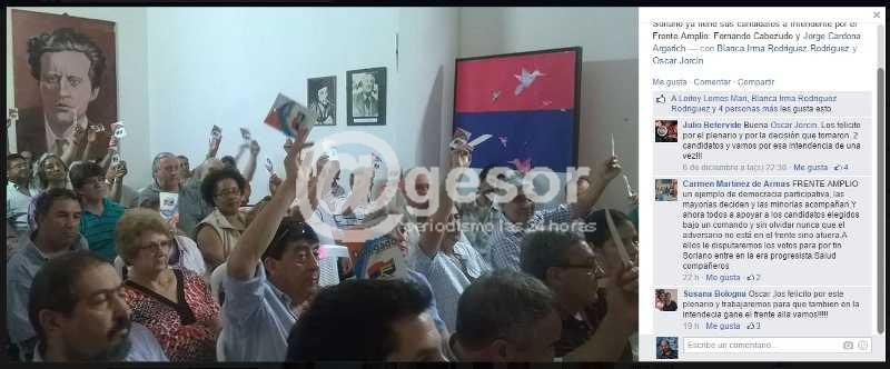 La decisión adoptada por el Plenario Departamental del Frente Amplio de impulsar dos candidaturas a la Intendencia de Soriano generó una casi inmediata reacción en las redes sociales. Varios frenteamplistas felicitaron a Jorge Cardona y Fernando Cabezudo, los dos candidatos que presentará la izquierda en las elecciones de mayo próximo, pero muchos otros expresaron su disconformidad.