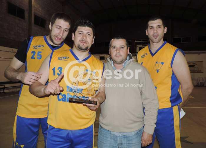 Foto: Ricardo Lozano junto a los jugadores de Esparta Fernando Verrone, José Fernández y Javier Crocano, tras el cuadrangular ganado por los amarillos, previo al presente Torneo Competencia (del archivo de @gesor)