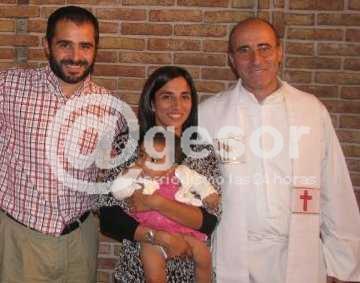 En las fotografías de abril 2009 junto al Padre Daniel Sturla en el bautismo de Catalina, la hija de Vanesa Dameno y Joaquín.