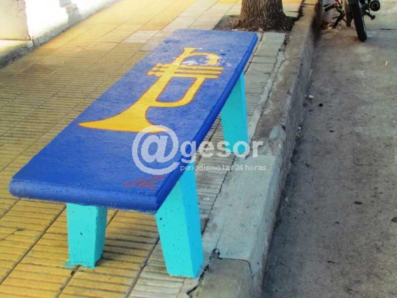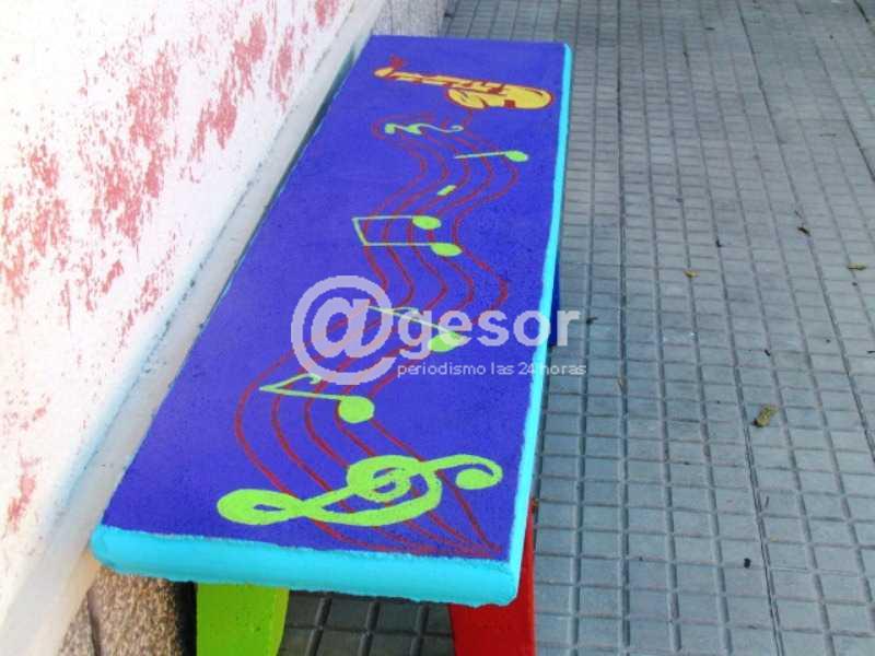 Allí se puede observar la colocación de bancos pintados con motivos que aluden al evento del mes enero