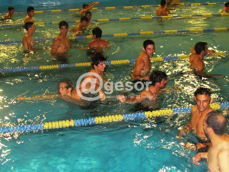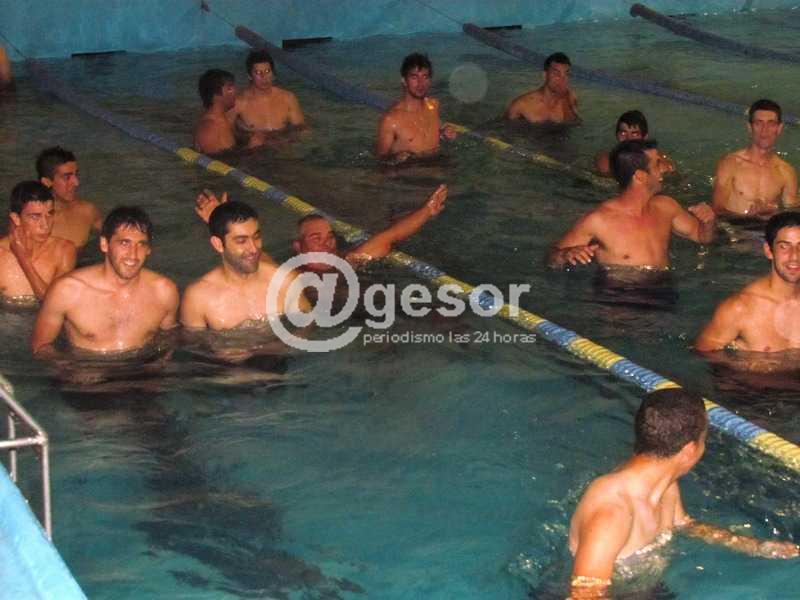 Luego de  los empates ante Rio Negro capital, los futbolistas de Mercedes realizaron trabajos este lunes en la piscina del Remeros.