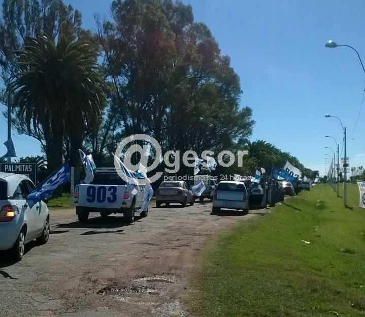 A las 13.00 horas hizo su pasada por Egaña, minutos antes de las 14.00 horas la caravana ingresaba a Palmitas, cumpliéndose con los horarios establecidos, para continuar hacia Dolores, Villa Soriano y luego si arribar a Mercedes.