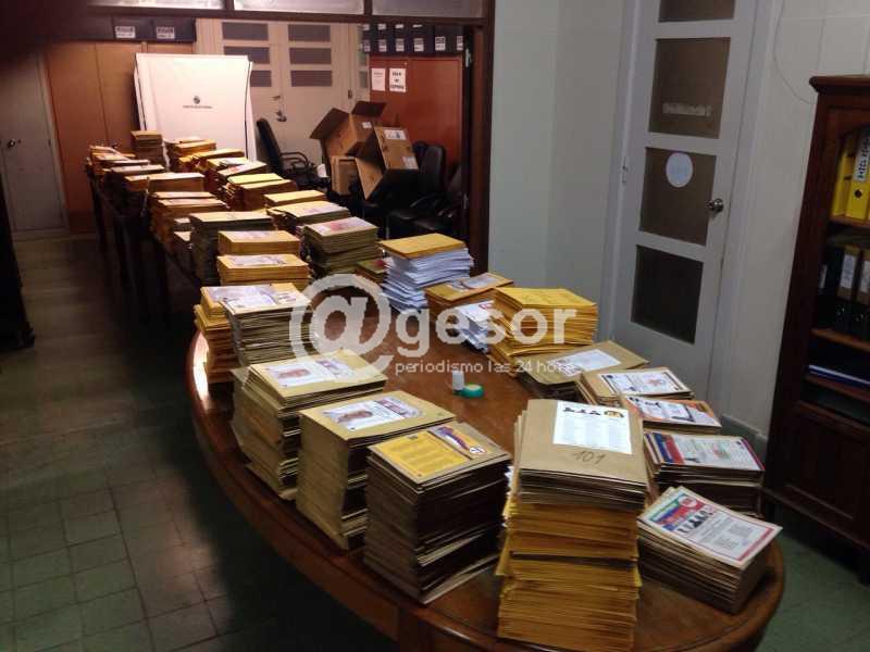 Las urnas de plástico que sustituyen definitivamente a las de chapa que están acondicionadas -como lo muestra la fotografía- en la planta baja del edificio, para ser enviadas a depósito, el padrón electoral, las carpetas, sobres con las hojas de votación de cada uno de los circuitos, proporcionadas por los propios partidos políticos y sectores, pertimiendo que estén presentes en los 208 circuitos.