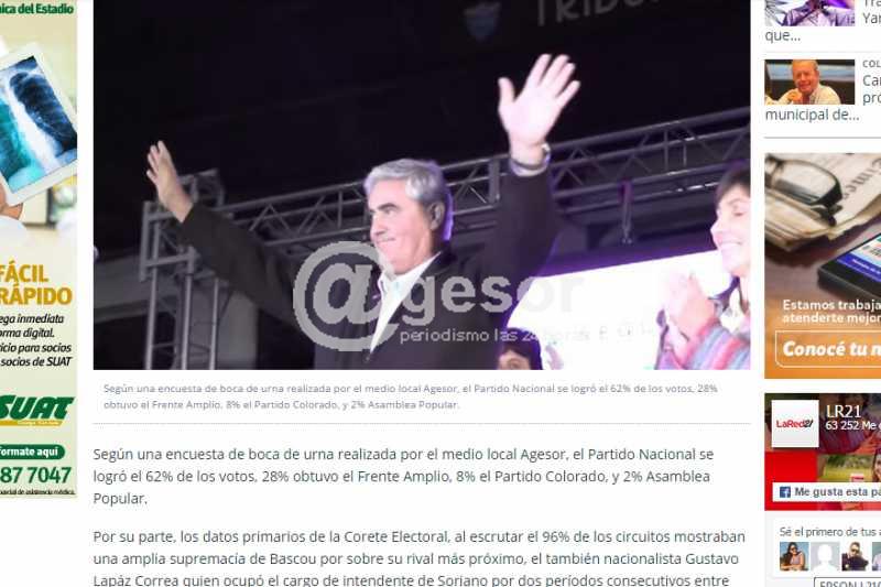 Distintos medios capitalinos y de varios departamentos siguieron minuto a minuto de la cobertura especial realizada por @gesor en el marco de las Elecciones Departamentales y Municipales 2015, lo que para un medio del interior del país es algo inédito, habiéndose logrado este resultado exitoso con mucho sacrificio y poca disponibilidad de recursos técnicos y económicos.