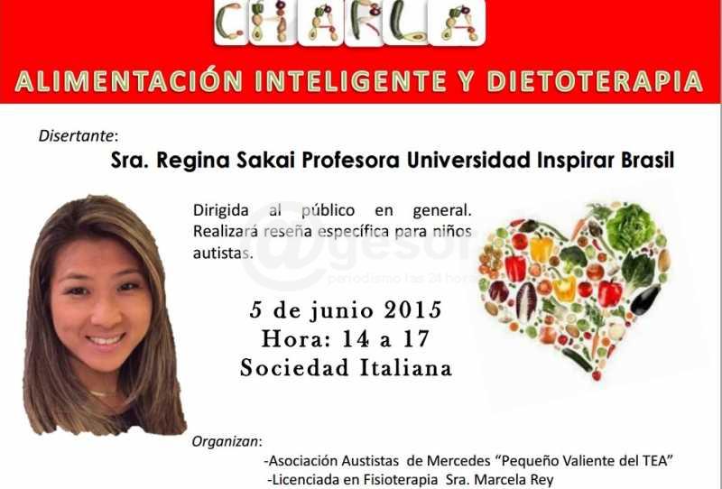 Con la organización de la asociación Pequeño Valiente del Trastorno del Espectro Autista y de la Lic. en Fisioterapia, Marcela Rey se desarrollará charla sobre "Alimentación inteligente y dietoterapia", siendo la disertante Regina Sakai Profesora Universidad Inspirar Brasil, dirigida al público en general y realizará reseña específica para niños autistas.