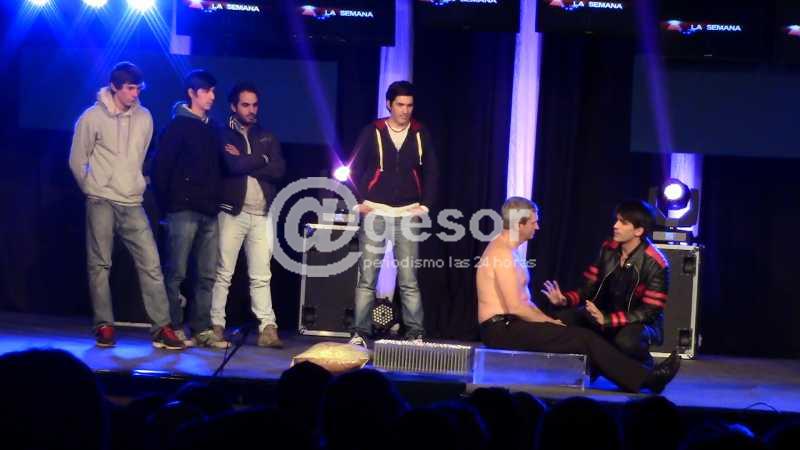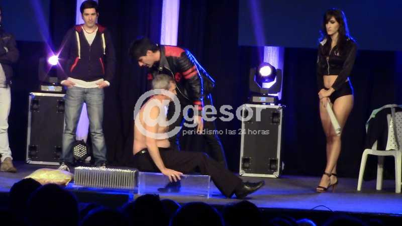 Tusam llegó a Mercedes con su elenco completo, con varias personas en escena, y con la participación de dos llamativas chicas que lo asistían en todo momento sobre el escenario.