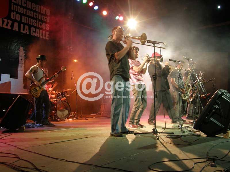 Esta banda de La Plata (Argentina), que fusiona el Jazz con el Funk, entre otros ritmos, fue uno de los atractivos del 6to. encuentro Jazz a la Calle realizado en enero pasado en Mercedes. Su actuación contagió al público que se congregó en la Manzana 20, fundamentalmente por el histrionismo de sus integrantes y por el ritmo, por momento frenético de los vientos.