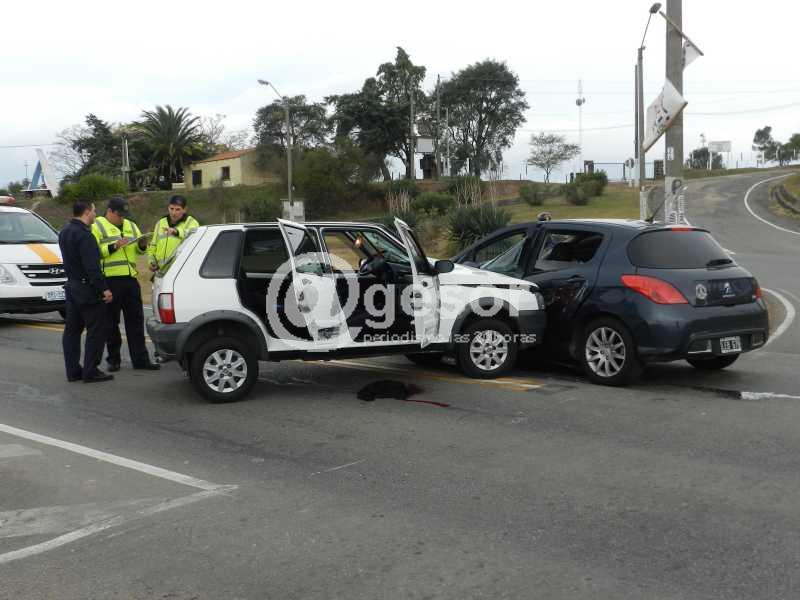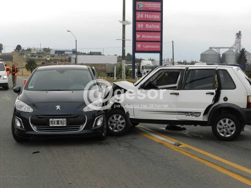 Por Ruta 2 circulaba de Norte a Sur el Fiat Uno matrícula KMA 8325 y el Peugeot LEB 678 de Argentina que salía de una de las estaciones de servicio para girar en el trébol, miró hacia la derecha y no venía ningún vehículo, luego hacia la izquierda y recién se percató de la presencia del Fiat Uno que impactó en el lateral del Peugeot y la violencia del golpe hizo girar a ambos vehículos para quedar en la posición que muestra la fotografía.