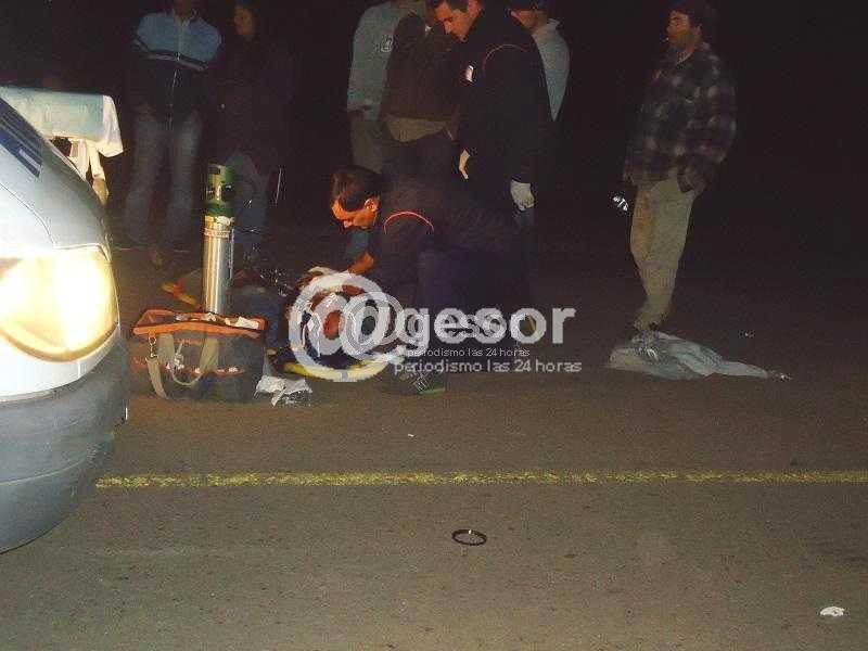 Jefatura de Policía de Soriano informó sobre siniestro ocurrido en Dolores, que fue atendido en la madrugada por seccional 5a. en calle Gadea entre Vázquez y Shuster, donde se establece que en circunstancias que circulaba por el lugar la moto Winner Explorer 125 cc KDL 053, guiada por el masculino M.H.A.B. de 32 años, portando casco protector, quien al llegar al lugar y por causas que se investigan embistió desde atrás a la femenina S.L.B.C. de 32 años. Trasladados ambos protagonistas en ambulancia al Hospital Dolores, se les certificó al masculino “politraumatizado grave” y a la femenina politraumatizada leve, fractura isquion izquierdo, quedando internada en observación. Se dio intervención a Policía Científica y Tránsito Municipal, que efectuó espirometría a la dama con resultado negativo, no pudiendo realizarse el mismo al motonetista, debido a su estado; tramitándose a la Justicia.