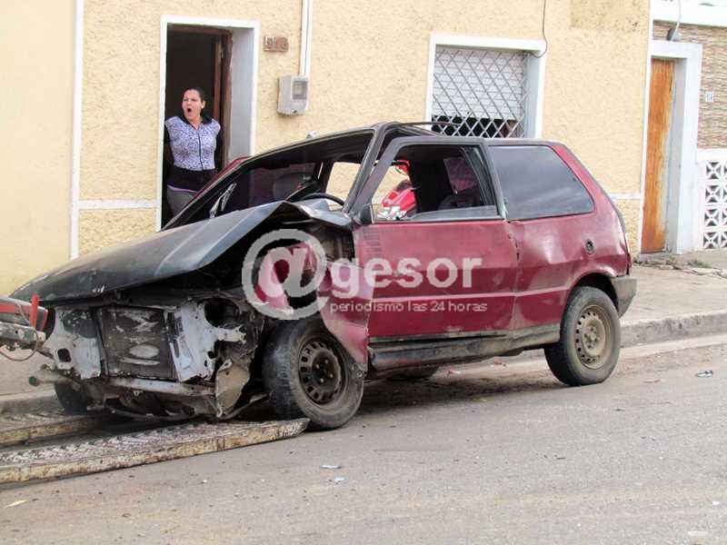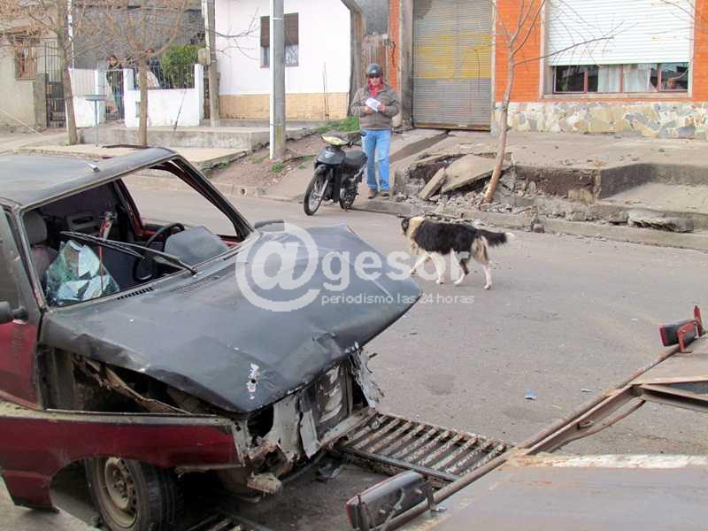 Por calle Colón de norte a sur un joven de 29 años identificado con las iniciales MRGM, perdió el control del auto Fiat UNO matrículado en Montevideo SBA 3905 que conducía a pocos metros de la intersección con callle Flores; según testigos, debido a la alta velocidad el frenado del vehículo no fue suficiente ya que se subió a la vereda y embistió otro vehiculo que se encontraba estacionado.