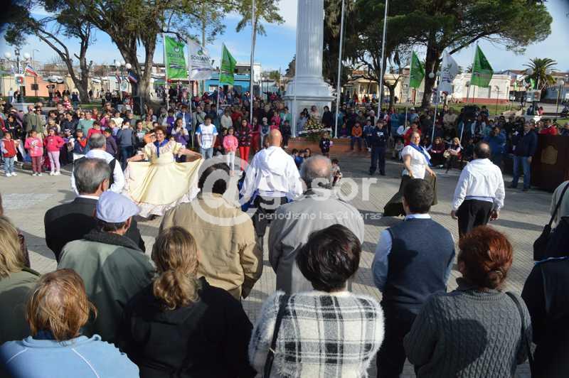 "Nos reunimos en esta plaza recientemente remozada, donde algunos sectores han recuperado características originales, buscando mejorar la comodidad y seguridad para los vecinos; pero qué además posee en el centro la columna de la libertad con su tradicional estatua que también ha sido restaurada, lo que la convierte en el mejor marco para este festejo", comenzó diciendo la Directora de Cultura Lourdes Cerchi.